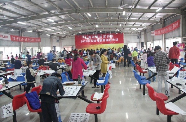 2013年10月19日,上海市書法家協(xié)會2013年青浦區(qū)考級考試在上海德力西舉行。來自全區(qū)的450多名書法愛好者分別參加3-8級書法考級考試。考生中,絕大多數(shù)是中小學生,年齡最小6歲,最大的60多歲。這次考試充分展示了他們扎實的書法功底和勤學苦練的精神面貌。